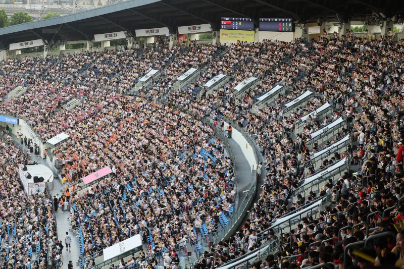 (서울=연합뉴스) 박동주 기자 = 한국프로야구 2024 KBO리그가 역대 한 시즌 최다 관중 신기록을 세운 18일 서울 잠실야구장에서 열린 프로야구 KIA 타이거즈와 LG 트윈스의 경기를 찾은 관중들이 응원하고 있다. <무단 전재 재배포 금지, AI 학습 및 활용 금지>