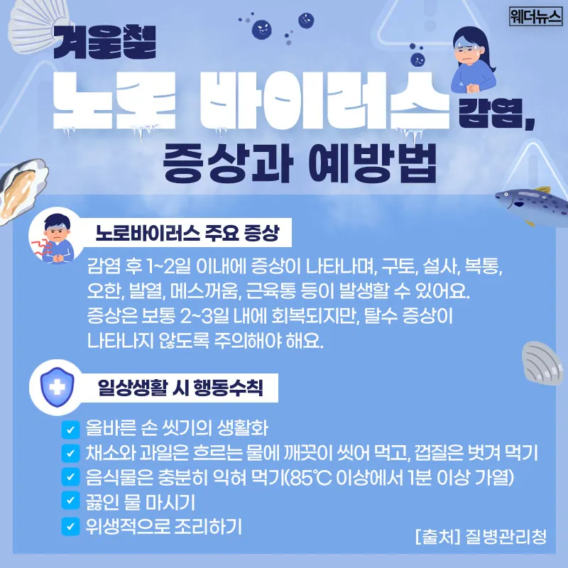 찬 바람이 매서운 겨울, 감기나 독감뿐만 아니라 노로바이러스도 조심해야 할 계절입니다.