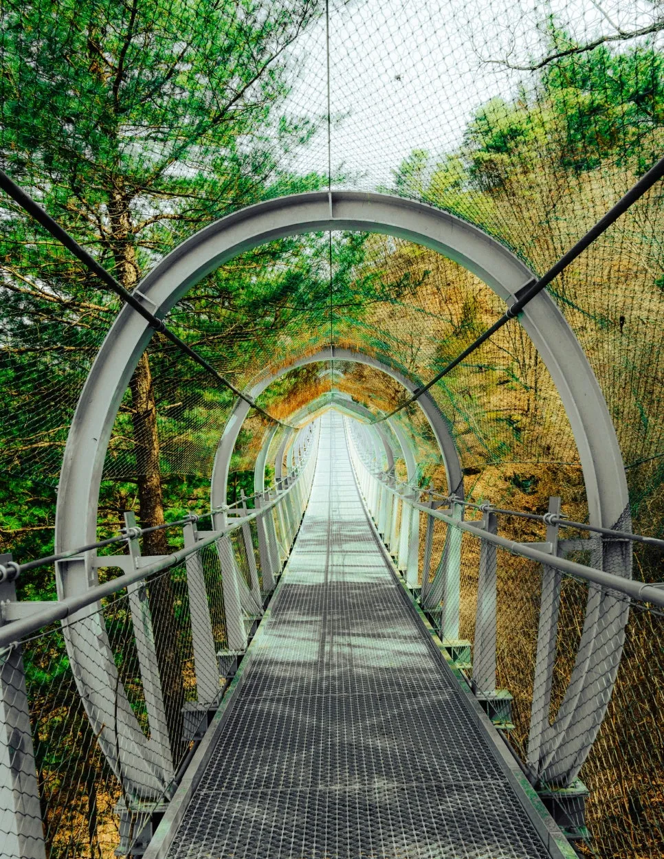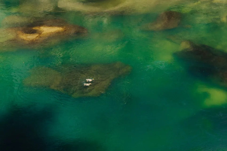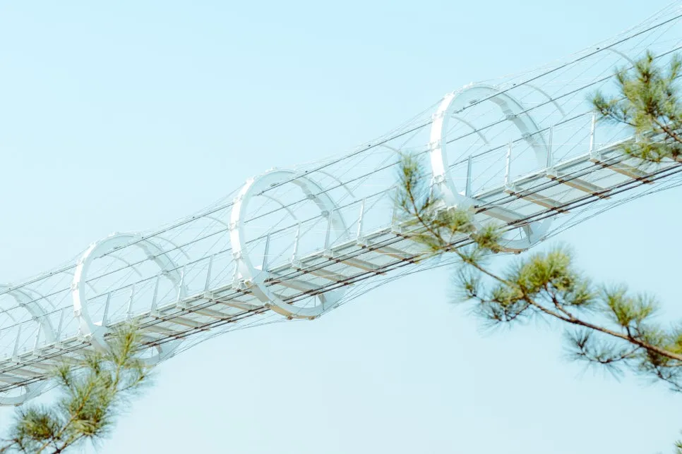 이후 샘소 쉼터, 2번홀교를 지나면 주상절리 절경 구간으로 꼽히는 ‘철원한탄강 스카이전망대’가 등장한다. 이곳에 닿았다면 이제 딱 코스 절반까지 온 셈이다. 이곳에도 반원 형태의 다리가 있는데, 중간부터는 바닥 전체가 강화유리로 되어 있어 발아래가 훤히 보인다. 발밑 아래 펼쳐진 옥빛 한탄강에는 오리들이 유유히 헤엄친다.