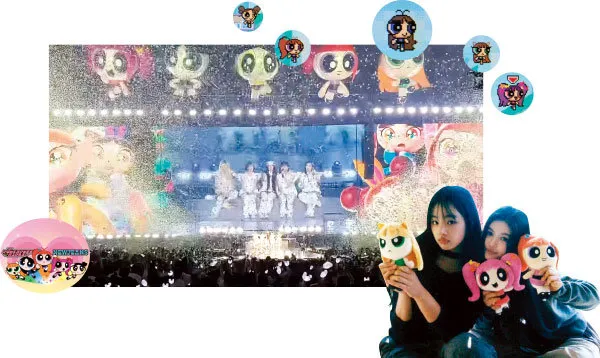 K-팝과 캐릭터의 협업은 이번이 처음은 아니다. 캐릭터를 가장 적극적으로 내세웠던 걸 그룹은 뉴진스를 꼽을 수 있다. 뉴진스는 2023년 발매한 2집 앨범 ‘Get Up’에서 워너브라더스 디스커버리 카툰 네트워크인 ‘파워퍼프걸’과의 협업으로 화제가 됐다. 파워퍼프걸로 변신한 뉴진스 멤버들의 캐릭터가 뮤직비디오와 앨범 커버 이미지에 쓰이며 신선한 재미를 선사했다. 초능력을 가진 소녀 히로인 파워퍼프걸과 ‘자연스러운 소녀다움’을 추구하는 뉴진스의 이미지가 잘 어우러졌다는 평을 받았다.