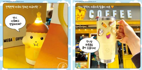 어느 날 갑자기 사람으로 변한 강아지 마루의 이야기를 다룬 네이버 웹툰 ‘마루는 강쥐’. 마루가 강아지일 때를 생각하고 벌이는 엽기적인 행동과 귀여운 그림체로 MZ의 마음을 사로잡았다. 특히나 ‘언니, 나 사람 됐다. 짱이지?’ 등의 밈과 아이돌 그룹 ‘엔믹스’의 해원이 부른 OST가 큰 화제가 됐다. 지난해 메가MGC커피와 컬래버레이션으로 진행한 ‘언니 껌딱지 마루가득 텀블러 세트’는 금세 완판됐다. 이 세트는 귀여운 마루 자석 5종을 텀블러에 부착해 스스로 꾸밀 수 있는 아이템이다.