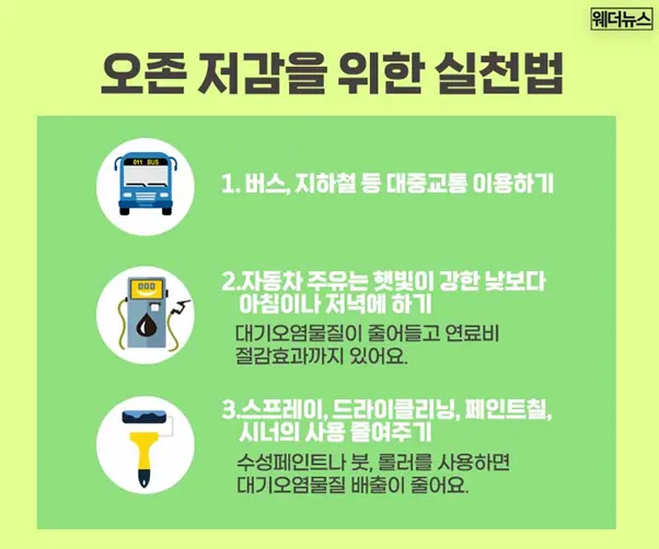 오존을 줄이고 지키는 것은 우리 책임의 일부임을 잊지 않고 생활 속 작은 실천을 이어간다면, 맑은 하늘과 건강한 여름을 모두 누릴 수 있습니다.