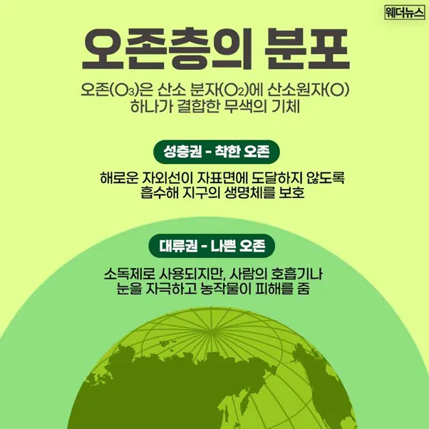 바로 이런 이유로 성층권의 오존은 ‘좋은 오존’, 혹은 ‘착한 오존’이라 불리며, 생명 보호의 핵심 역할을 합니다.
