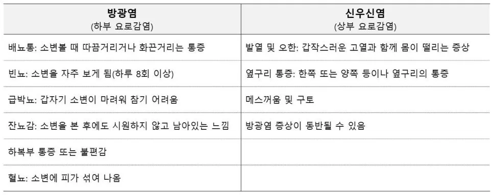 Q. 요로감염을 의심할 수 있는 대표적인 증상에는 어떤 것들이 있나요?