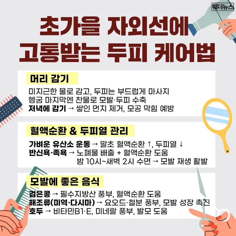 아직 햇볕이 따가운 초가을, 생활 속 작은 습관만으로도 두피와 모발 건강을 지킬 수 있다고 하는데요, 오늘은 두피를 건강하게 지키기 위한 생활 습관과 관리법을 함께 알아볼까요?
