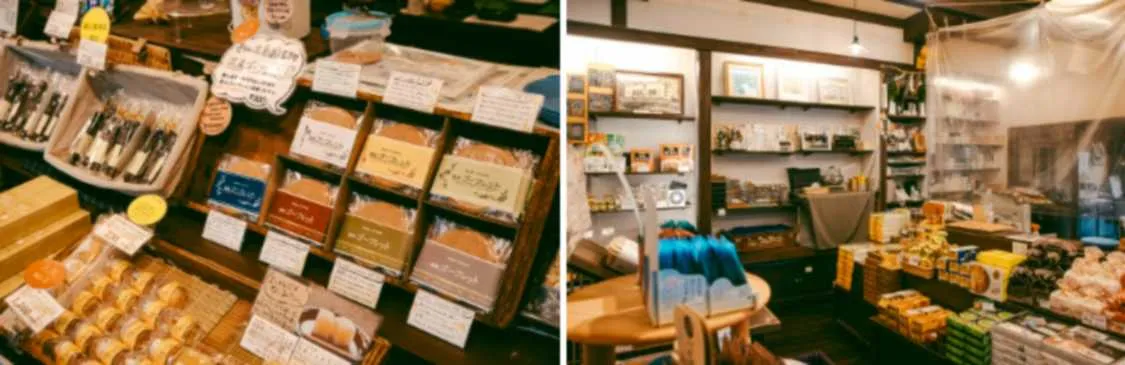토오토미야 혼포에서는 손수 구운 유센페이를 경험할 수 있고, 다양한 기념품도 구매할 수 있다. 맞은편 YaraYara SAPIN에서도 운젠과 나가사키의 독특한 먹거리와 기념품(에코백·엽서·자석 등)을 만날 수 있다.