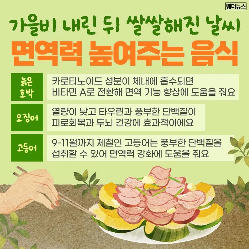 이맘때는 아침저녁 기온 차가 커져 몸이 쉽게 피로해지고 감기나 면역 저하로 컨디션이 떨어지기 쉬운데요, 이럴 때일수록 몸속부터 따뜻하게 챙겨주는 음식이 필요합니다.