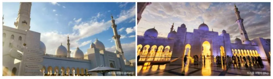 아부다비 쉐이크 자이드 그랜드 모스크, 두바이몰 분수쇼는 물론두바이의 명물인 수상택시,세계 최대 인공섬 팜 주메이라 모노레일 탑승까지 포함되어 두 도시의 대표 명소를 한 번에 즐길 수 있죠.