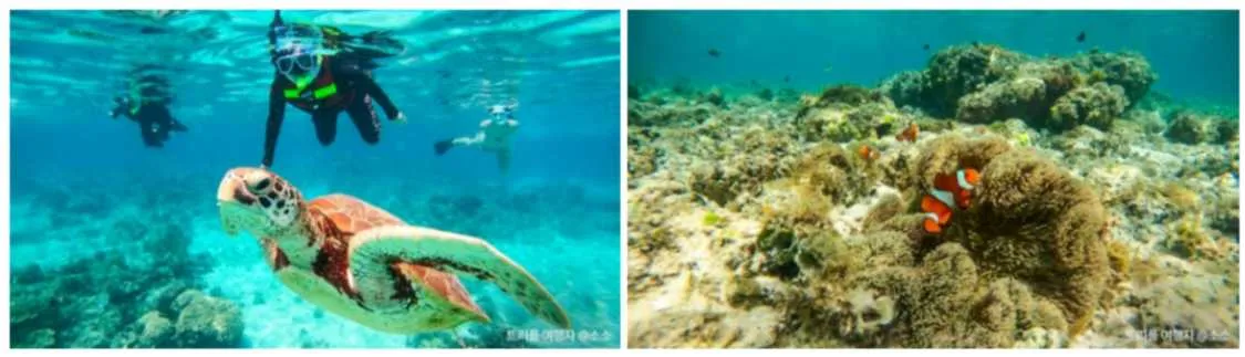게다가, 돌고래와 거북이를 만날 수 있는 호핑투어부터 에메랄드빛 바닷속을 감상할 수 있는 스노클링까지 포함되어 있어 휴양과 액티비티를 모두 즐기며 잊지 못할 추억을 만들 수 있어요.