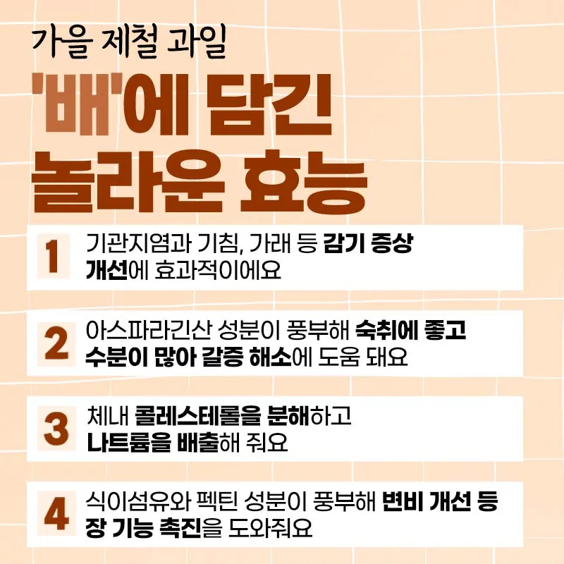 하지만 배의 진짜 매력은 그 속에 숨겨진 건강 효능에 있습니다.