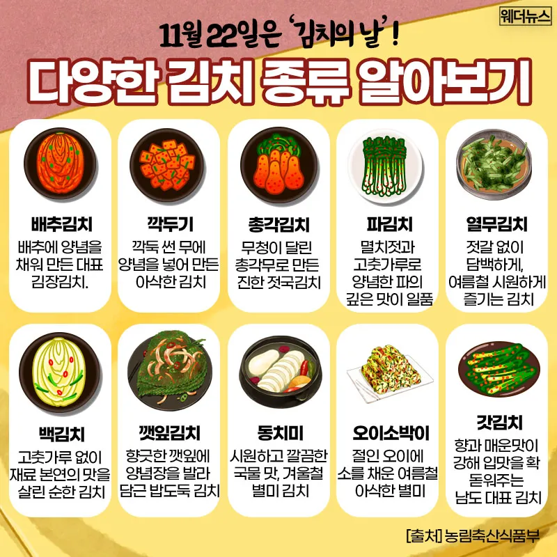 11월 22일 김치의 날! 알고 먹으면 더 맛있는 김치 10종