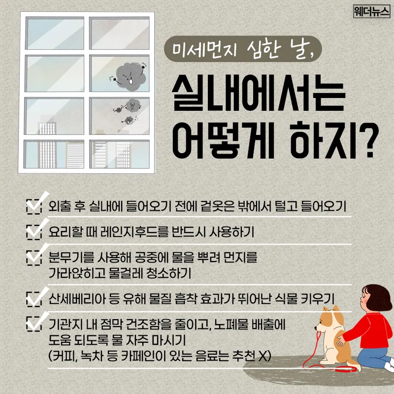 오늘은 미세먼지 많은 날, 집 안에서 실천할 수 있는 간단하지만 효과적인 방법들을 소개합니다.