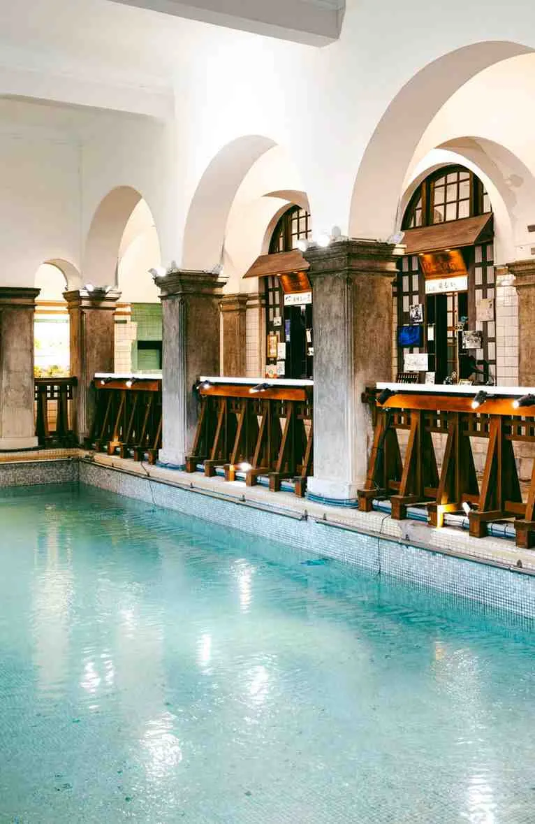 1913년 6월, 일제강점기 당시 일본 이즈 온천 대중탕을 모티브로 지어졌으며, 베이터우 온천 문화의 출발점이었다. 온천 관광이 활발했을 때 유랑 악사와 게이샤가 유입됐고, 오토바이로 연주자와 바 종업원이 오가던 독특한 풍경, 베이터우식 타이완 요리의 발전 등 독특한 문화도 있었다. 또 1960~1970년대에는 베이터우가 타이완 영화의 촬영지로도 유명했다.