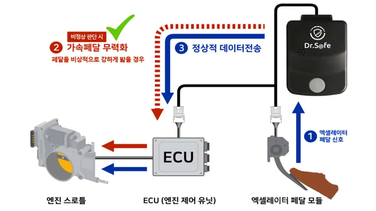 이 장치는 이미 효과가 검증됐다. 경찰청과 교통안전공단이 65세 이상 운전자 141명을 대상으로 3개월간 시범 운영한 결과, 페달 오조작 의심 사례가 71건 발생했지만 모든 경우에서 장치가 정상 작동해 사고로 이어지지 않았다.