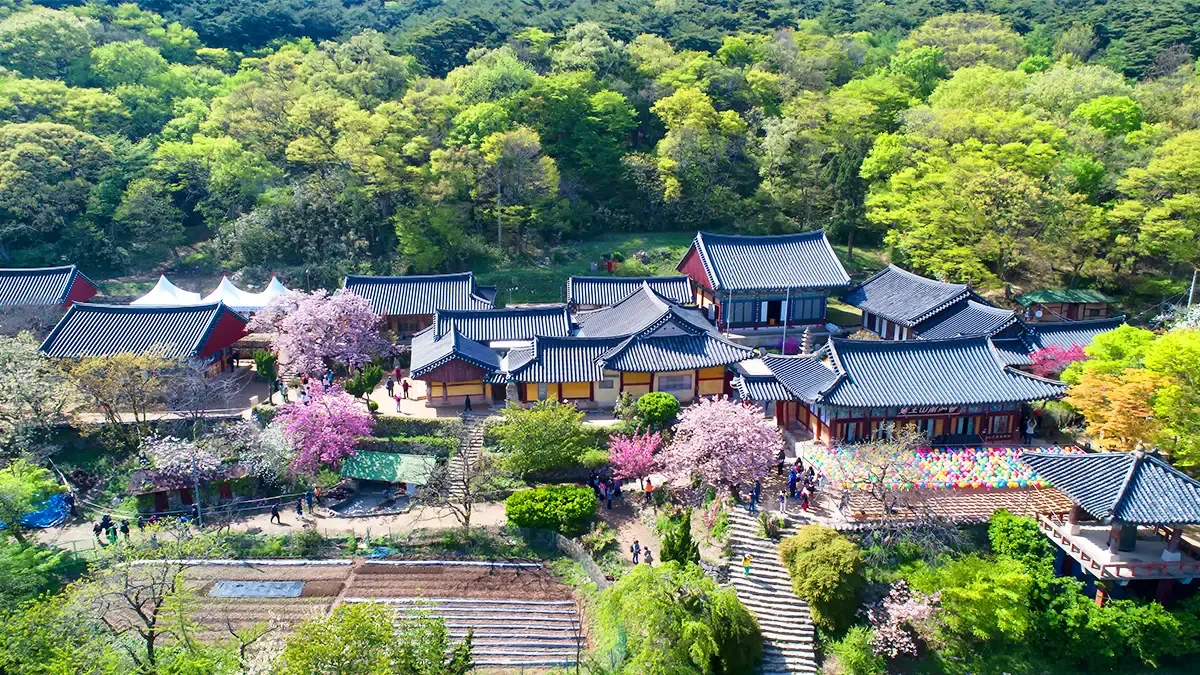 해마다 연분홍 겹벚꽃과 푸른빛이 감도는 청벚꽃이 경내를 가득 물들이며 봄의 마지막 장을 펼쳐낸다.
