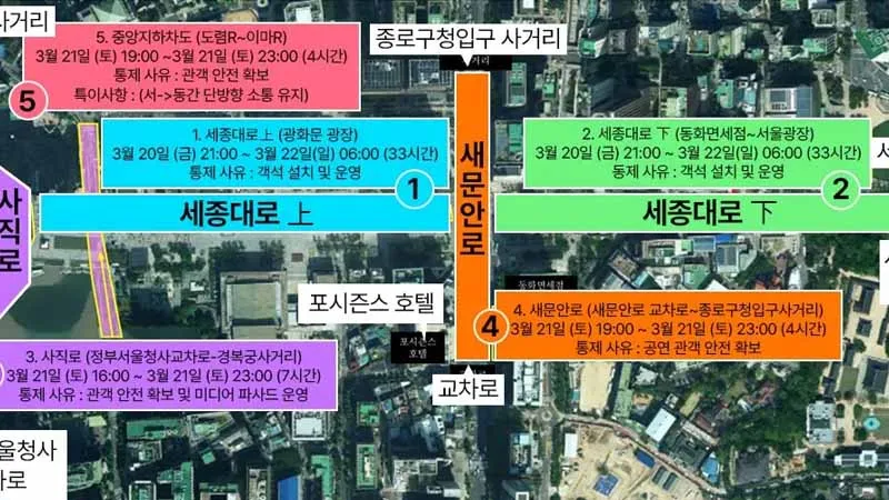 ・ 세종대로 👉 20일 21시 ~ 22일 06시 (전면 통제)
