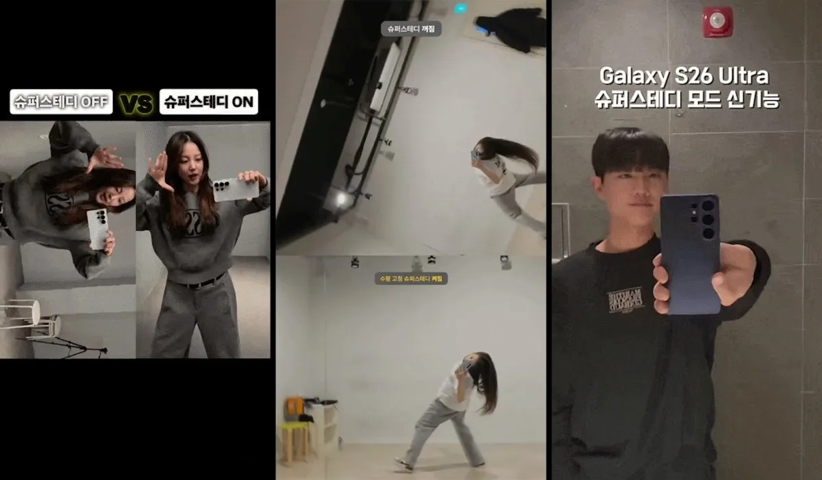 화제가 되고 있는 챌린지 중 하나는 ‘갤럭시 S26 시리즈’의 ‘수평 고정 슈퍼 스테디’ 기능을 직관적으로 체감할 수 있는 영상이다. 대표적인 콘텐츠는 ‘미러 챌린지’로 거울 앞에서 ‘갤럭시 S26 시리즈’를 360도로 돌리며 자신의 모습을 촬영하는 내용이다. 제품이 회전하는 동안에도 인물이 고정된 듯 화면 수평이 흔들림 없이 유지된다. ‘슈퍼 스테디’는 영상 촬영 시 손 떨림을 보정해 흔들림을 완화하는 기능으로, ‘갤럭시 S26 시리즈’에는 카메라가 360도로 회전해도 화면 수평을 유지해주는 ‘수평 고정 옵션’이 새롭게 추가됐다. 흔들림이 심한 상황에서도 별도의 짐벌 장비 없이 안정적인 앵글로 촬영이 가능한 것이다.