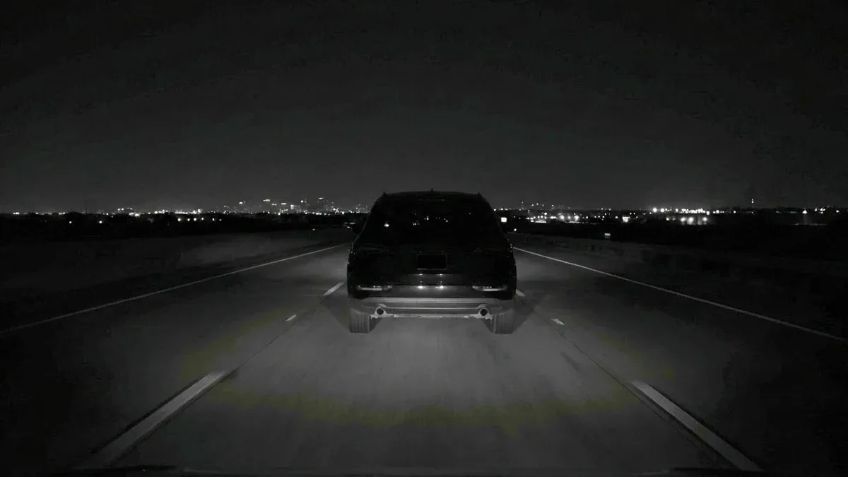 전조등을 끈 차, 도로 위 보이지 않는 장애물