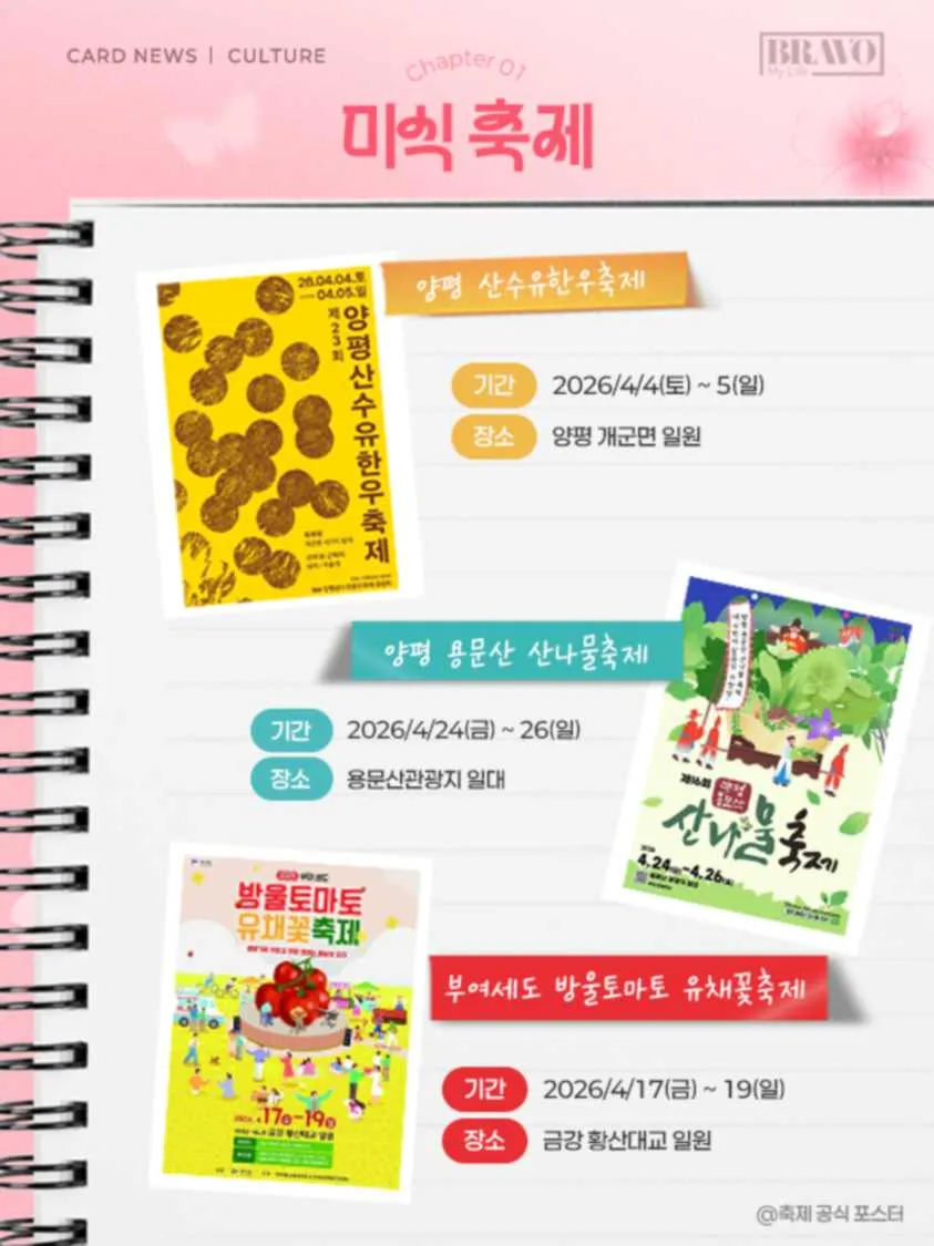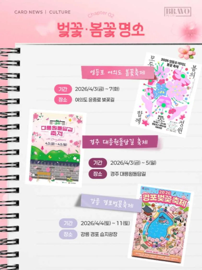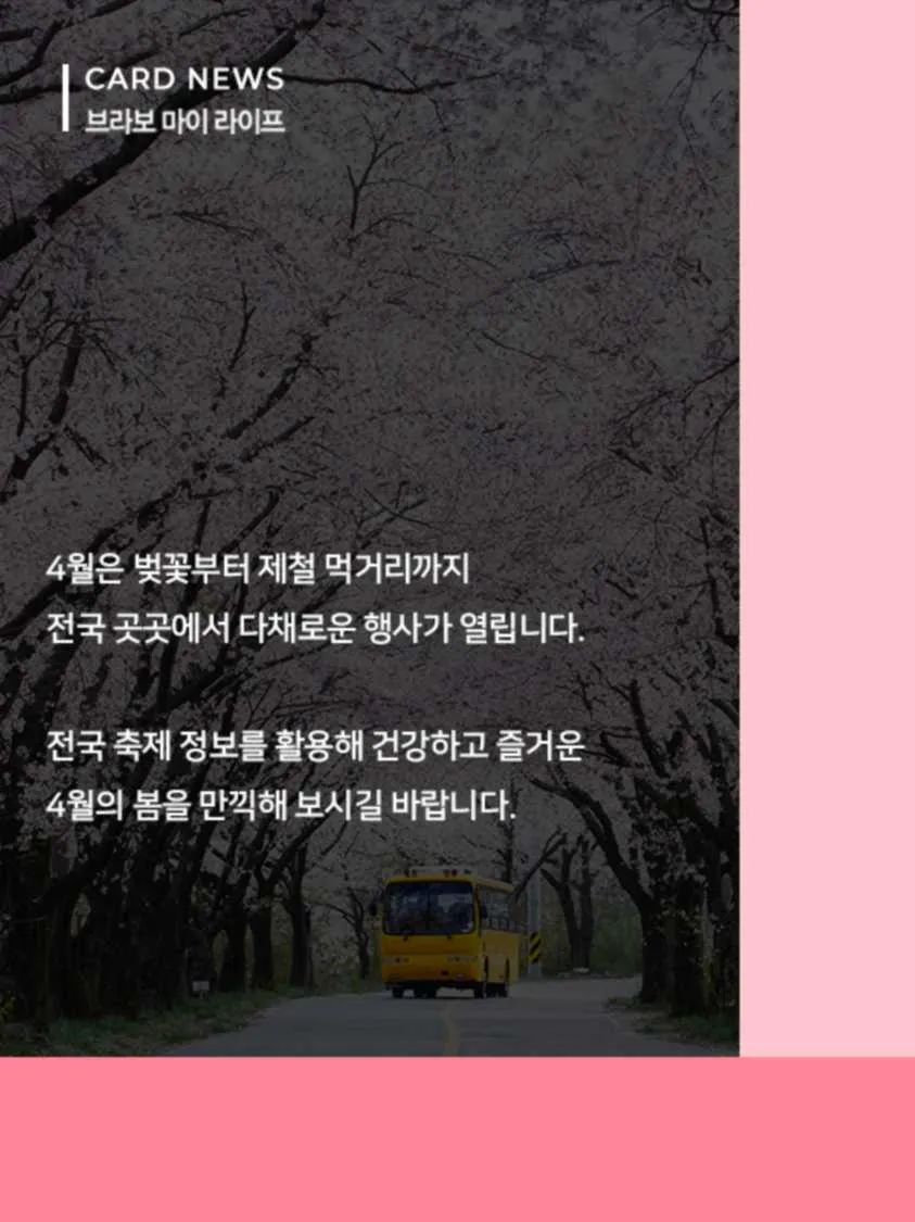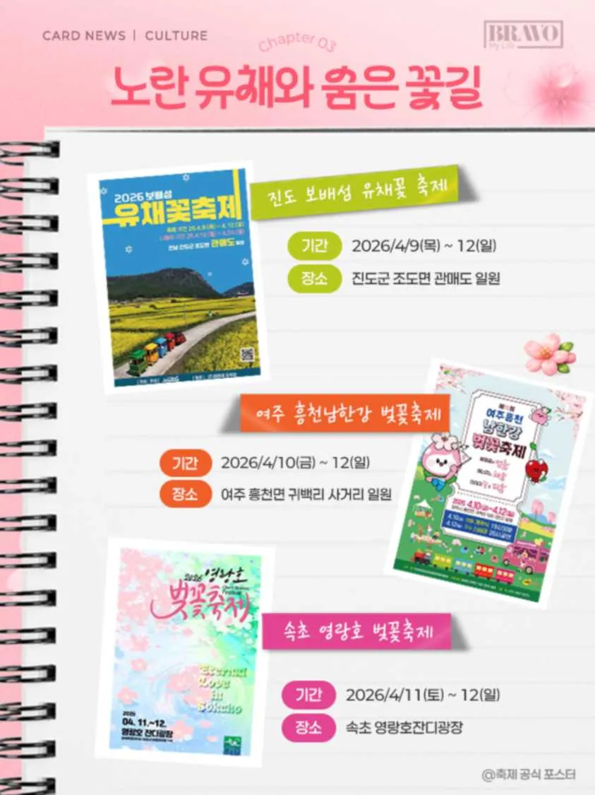 주요 축제의 기간과 장소를 미리 확인해두면 이동 동선을 효율적으로 계획할 수 있고, 혼잡을 피한 일정 구성에도 도움 된다. 4월, 전국 주요 축제 일정을 한눈에 정리했다.
