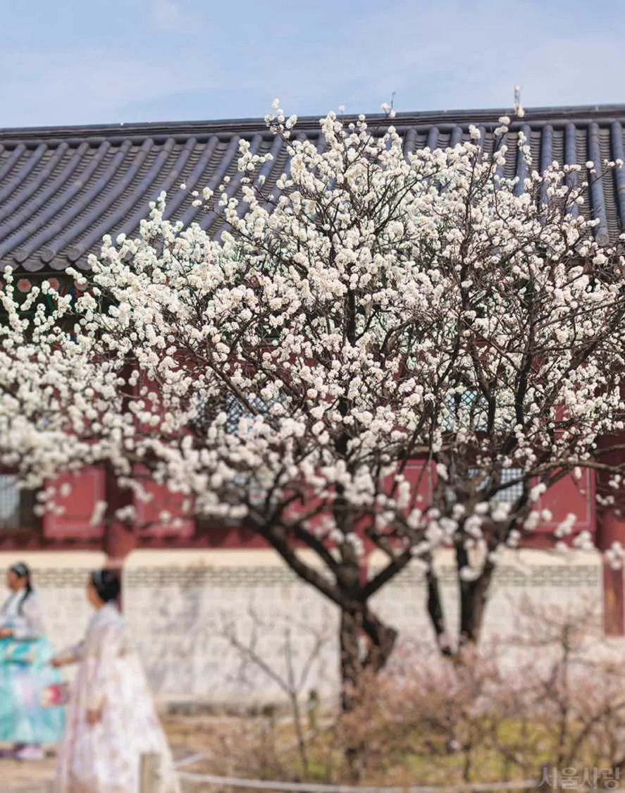 서울의 봄은 궁에 먼저 찾아온다. 광화문광장을 지나 경복궁 앞에 서면 겨울 내내 단정했던 풍경 위로 연둣빛이 번지기 시작한다. 궁의 오래된 전각 사이로 매화가 피고 살구꽃이 뒤따르며 계절이 서서히 깨어난다. 궁궐에는 매화와 살구, 벚나무와 진달래, 모란과 산철쭉 등 우리나라에서 오래 사랑받아 온 나무들이 곳곳에 식재돼 있다.