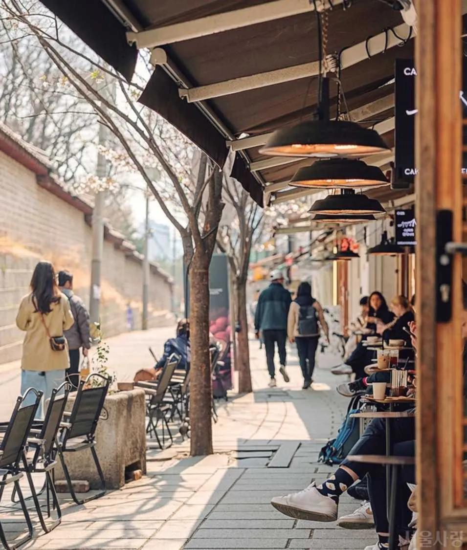 햇살 좋은 날 서순라길. 테라스에 앉아 여유를 즐기는 시민들의 모습에 봄이 찾아왔음을 실감한다.