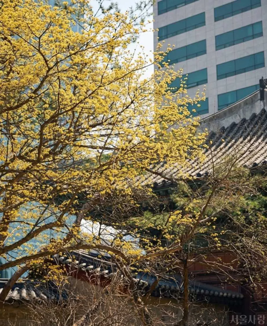 샛노란 산수유꽃이 덕수궁에 살며시 내려앉아 겨울의 끝자락을 밀어내고 봄의 문을 연다.