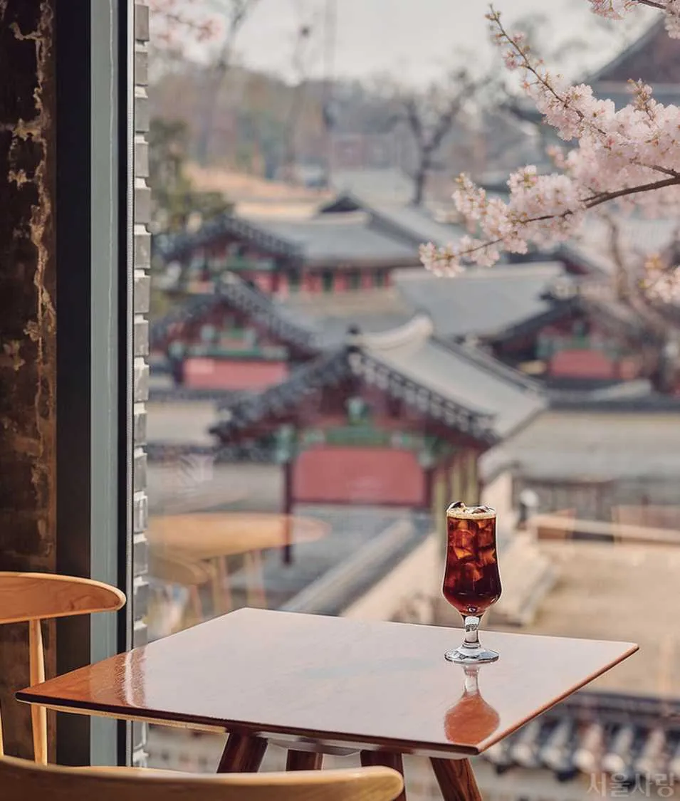 창덕궁 기와지붕이 층층이 펼쳐진 풍경을 내려다보며 즐기는 커피 한잔. 창가에 앉아 있으면 마치 궁궐 풍경을 통째로 빌린 듯한 기분이 든다