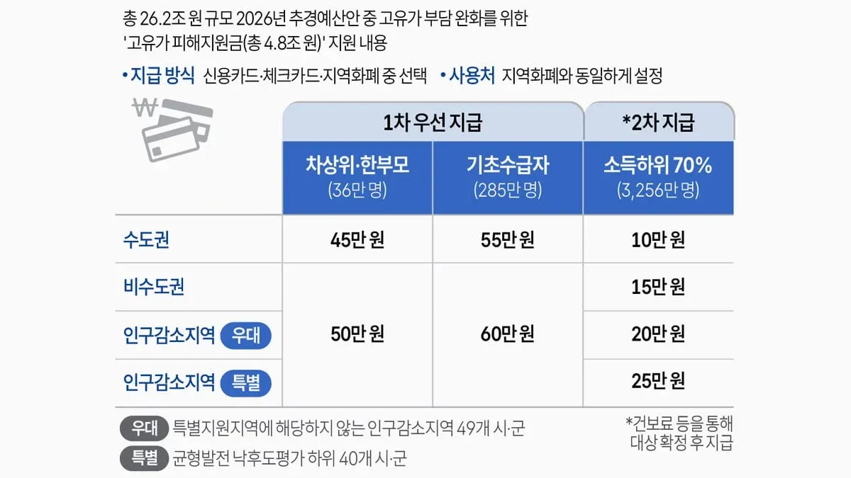 1인당 10만~60만 원, 지역·계층별 차등 지급