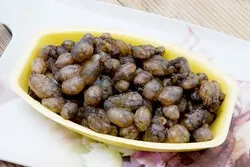 미더덕을 얘기할 때 오만둥이(사진)가 빠질 수 없다. 오만둥이는 미더덕과 흡사해 대체재로 자주 이용된다. 한국수산회에 따르면 오만둥이는 ‘오만 곳에 붙어산다’는 뜻을 담고 있다. 미더덕과 달리 밝은 베이지색이나 황갈색으로 몸 전체가 오돌토돌한 돌기로 이뤄져 있다. 미더덕보다 보통 3분의 1 수준으로 저렴해 식당에서 자주 쓰인다.